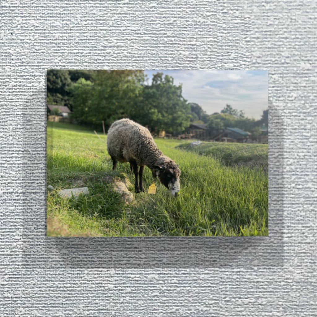 羊飼いにしか見せない羊たちの素顔 撮影:羊飼い丸岡|愛知牧場 サイズ:六つ切り(24cm×18cm) 素材:ファブリック生地